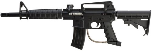 Description The new BT Omega Paintball Marker will take you into battle without breaking the bank! The rugged aluminum body will withstand heavy duty combat situations and provides increased performance and durability. The Omega will require little in terms of regular maintenance. Fully upgradeable, the Omega easily accepts numerous BT upgrades, such as the HALO? powered Rip Clip?,the BT1913 Barrel, the BT Clamp Elbow Kit and the Tactical Folding Stock. Carrying your marker out to battle has never been easier thanks to its secure carry handle. The Omega?s permanent, fixed sight rail provides you a continuous lock on your opponents, thereby giving you the confidence needed to take them out of the game. Grab your gear, lock and load and hit the field running with the Omega today! Features Rugged Aluminum Body Multi-Position Adjustable Stock Removal Barrel BT Rip Clip Compatible Accepts CO2 or High Pressure Air Sources Adjustable Velocity Steel Braided Air Hose Secure Carry Handle Fixed Sight Rail Removable Magazine with Tool Storage Built-In Sling Attachments